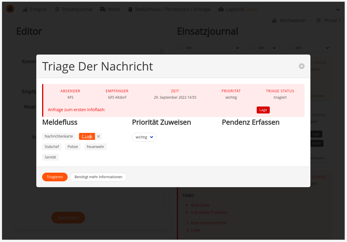 sitrep ermöglicht Nachrichten im Einsatzjournal einfach und effizient zu triagieren, um Erkenntnisse für die Führung abzuleiten.
